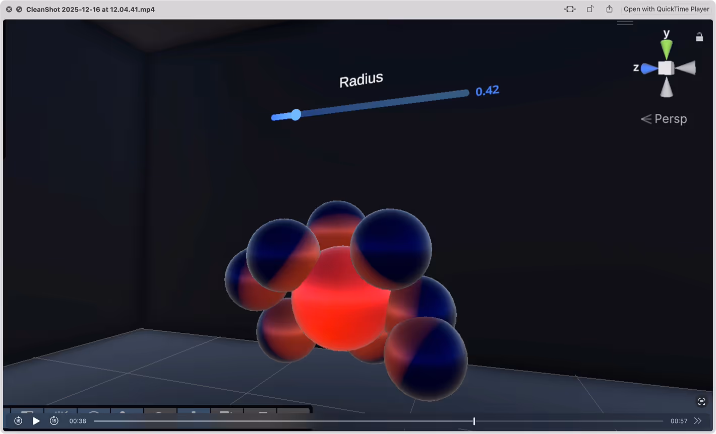 A second discovery came later, when we were first able to see dozens of spheres together in the headset. Earlier versions used more complex gradient shaders and glowing effects, but we had moved toward a simpler material treatment. Seeing that simplicity at scale — how clean it looked, how many spheres could exist in the space at once, how magical that density felt — confirmed that restraint was the right choice. The experience grew from that decision outward.
